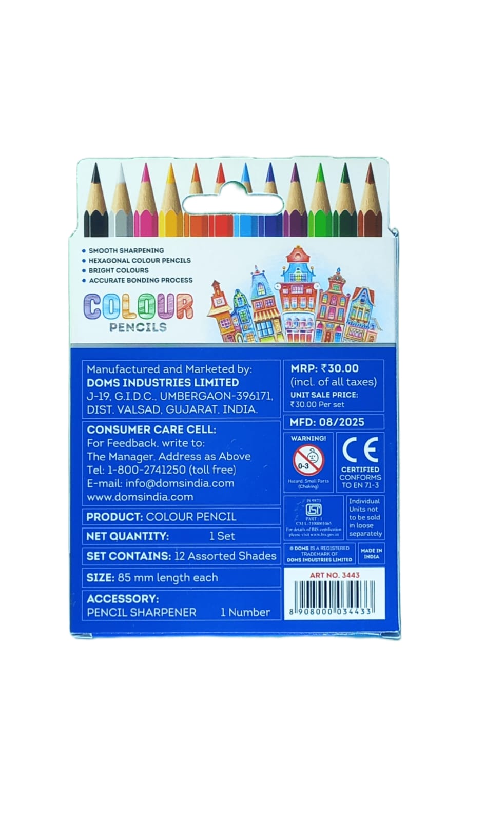 Pencil - 12 Shades Bright Multi Colours 85mm With Free Sharpener