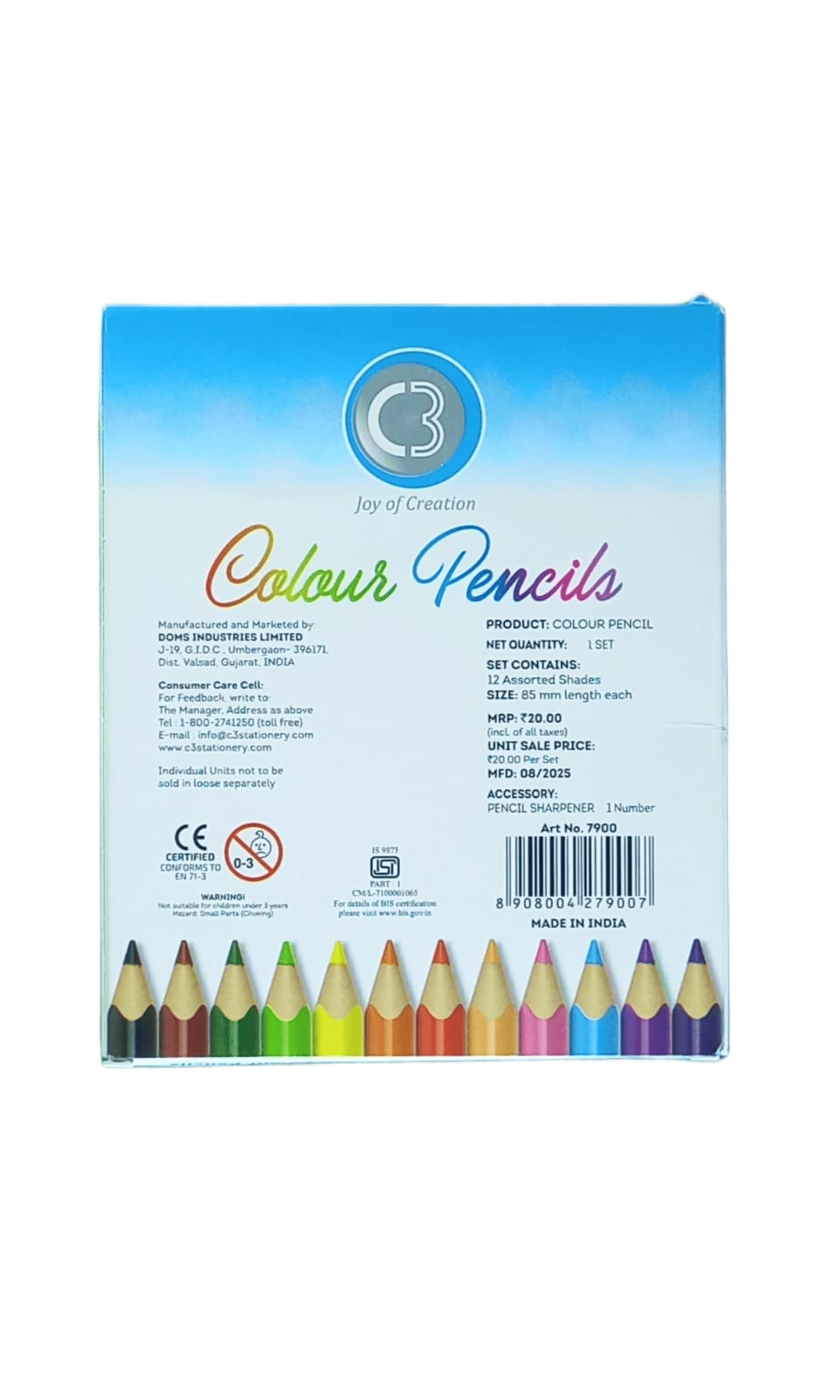 Pencil - 12 Shades Bright Multi Colours 85mm With Free Sharpener