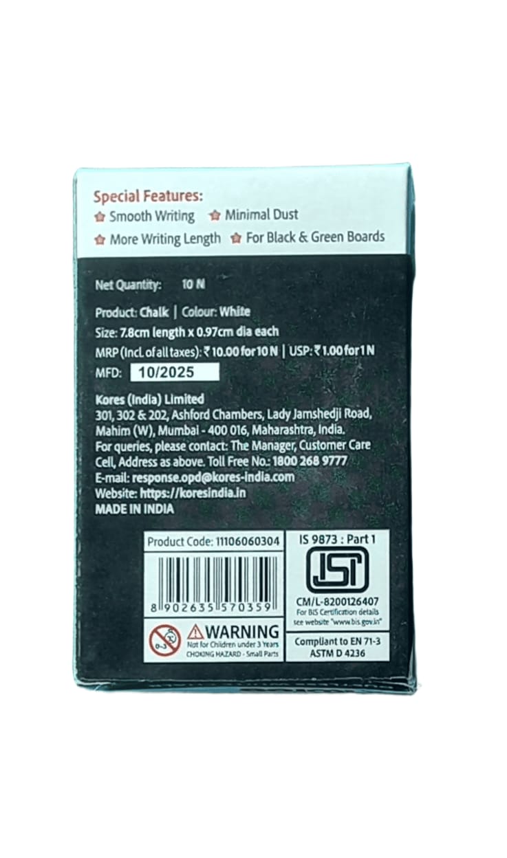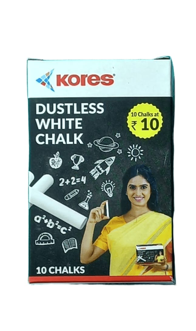 White Dustless Chalk for Black Board & Green Board - 10 Pieces Available In Packet.