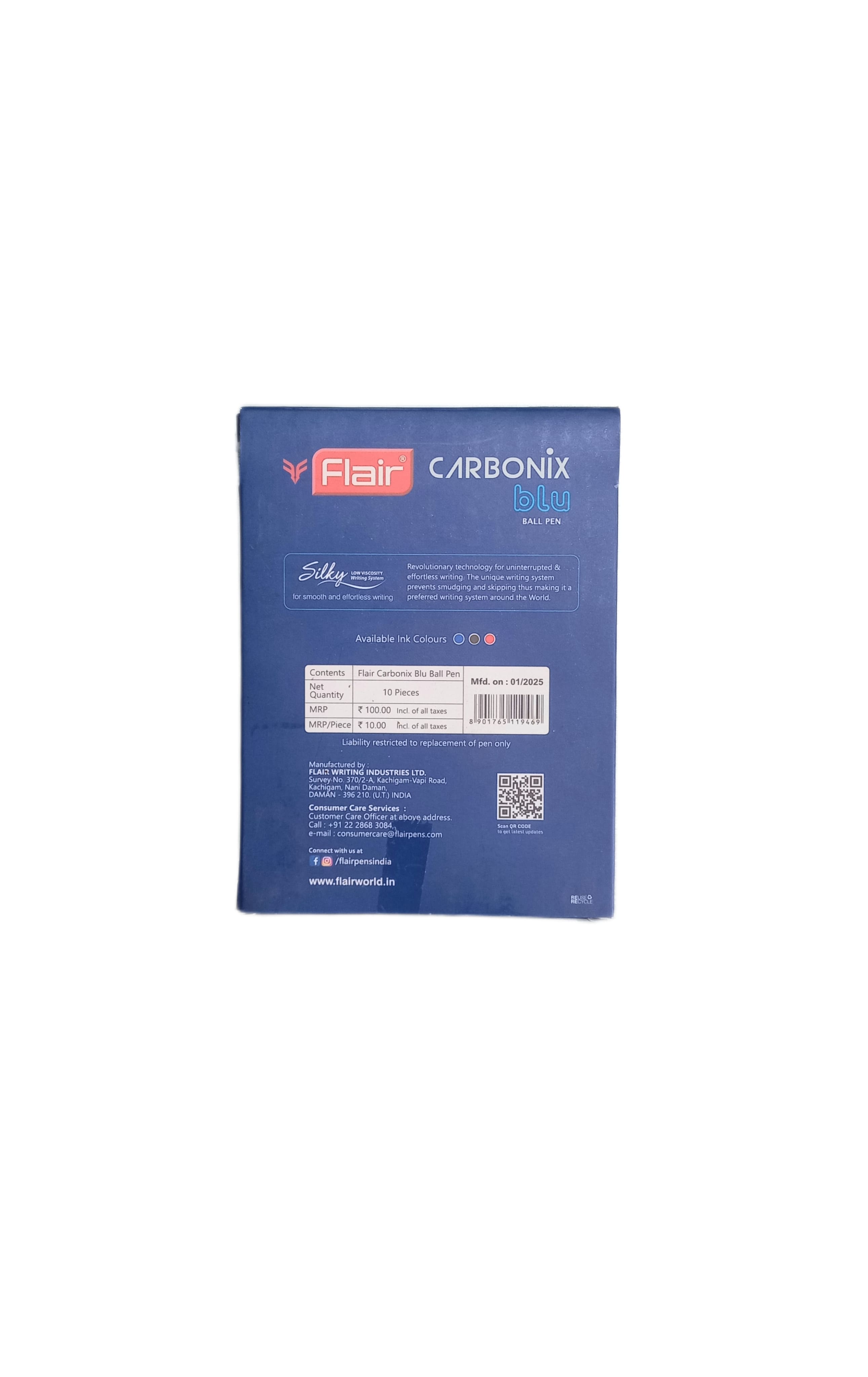 Flair Carbonix Ball Pen Blue - Pack Of 10, Best Grip, Smooth Writting