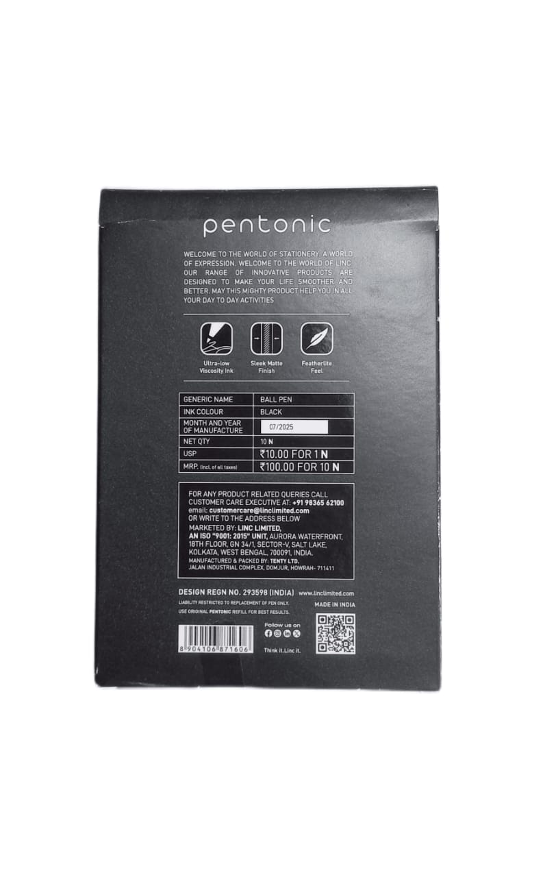 Pentonic Black Ball Pen - Pack Of 10, Smooth Writing