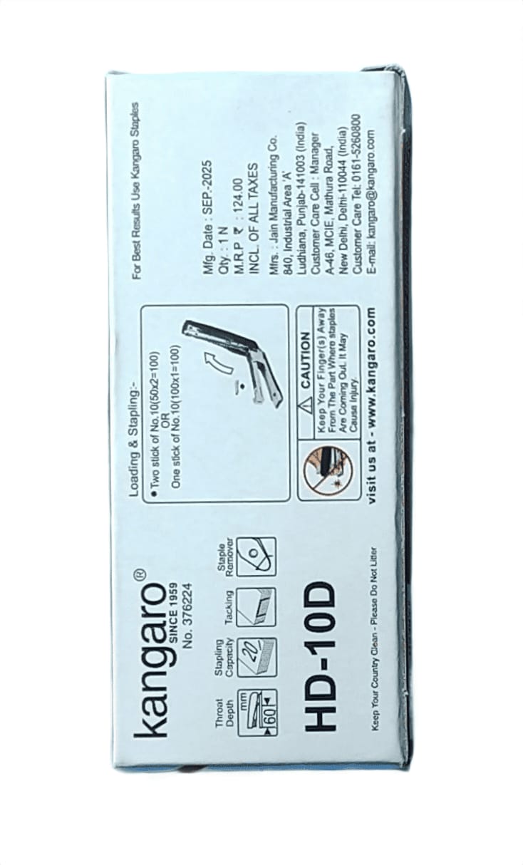 Kangaro HD - 10D Stapler With Quick Loading Mechanism, Sturdy & Durable For Long Time Use, Color May Vary, Pack Of 1