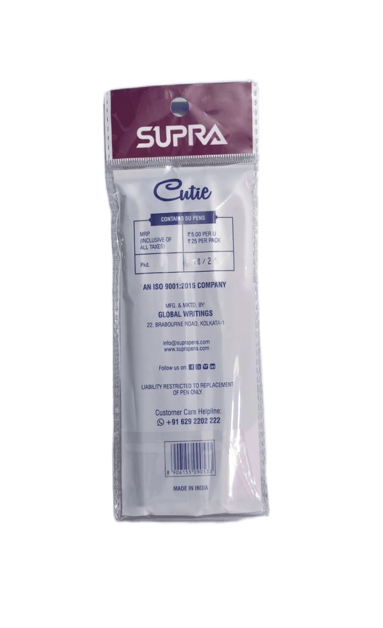 Supra Cutie Black Ball Pen - Pack Of 5, Best Grip, Smooth writing