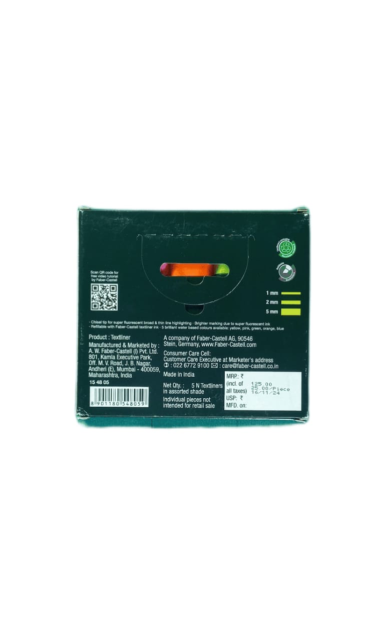 Faber Castell Multicolor Textliner Pen Set - Pack Of 5, Assorted Colours, Refillable Markers For Study