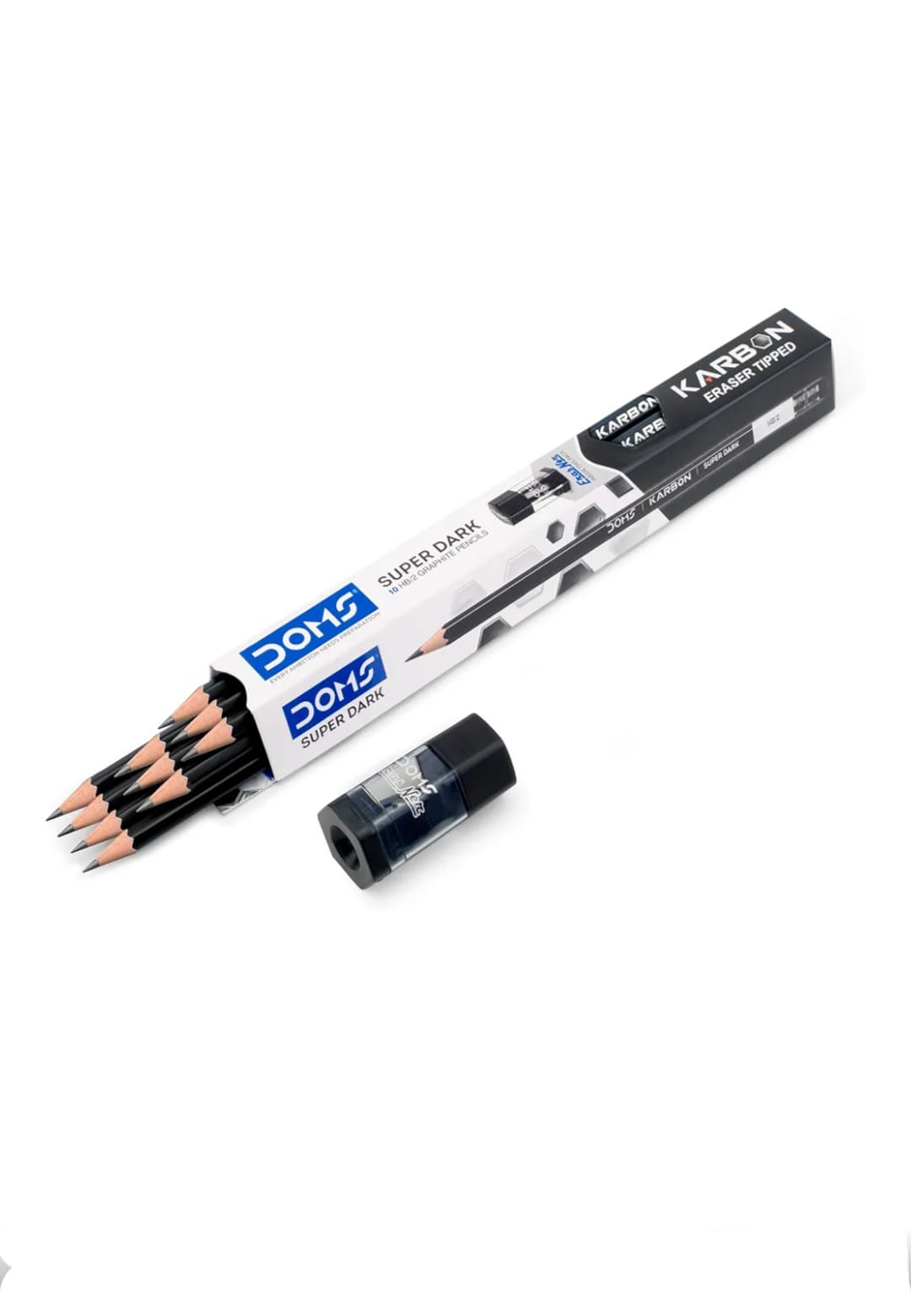 Doms KARBON Pencil, Strong Grip, Extra Dark, Easy Sharpening, Free Sharpener (Packet), Non-Toxic, Use for School, College Students & Office person, Pack of 10 pencil