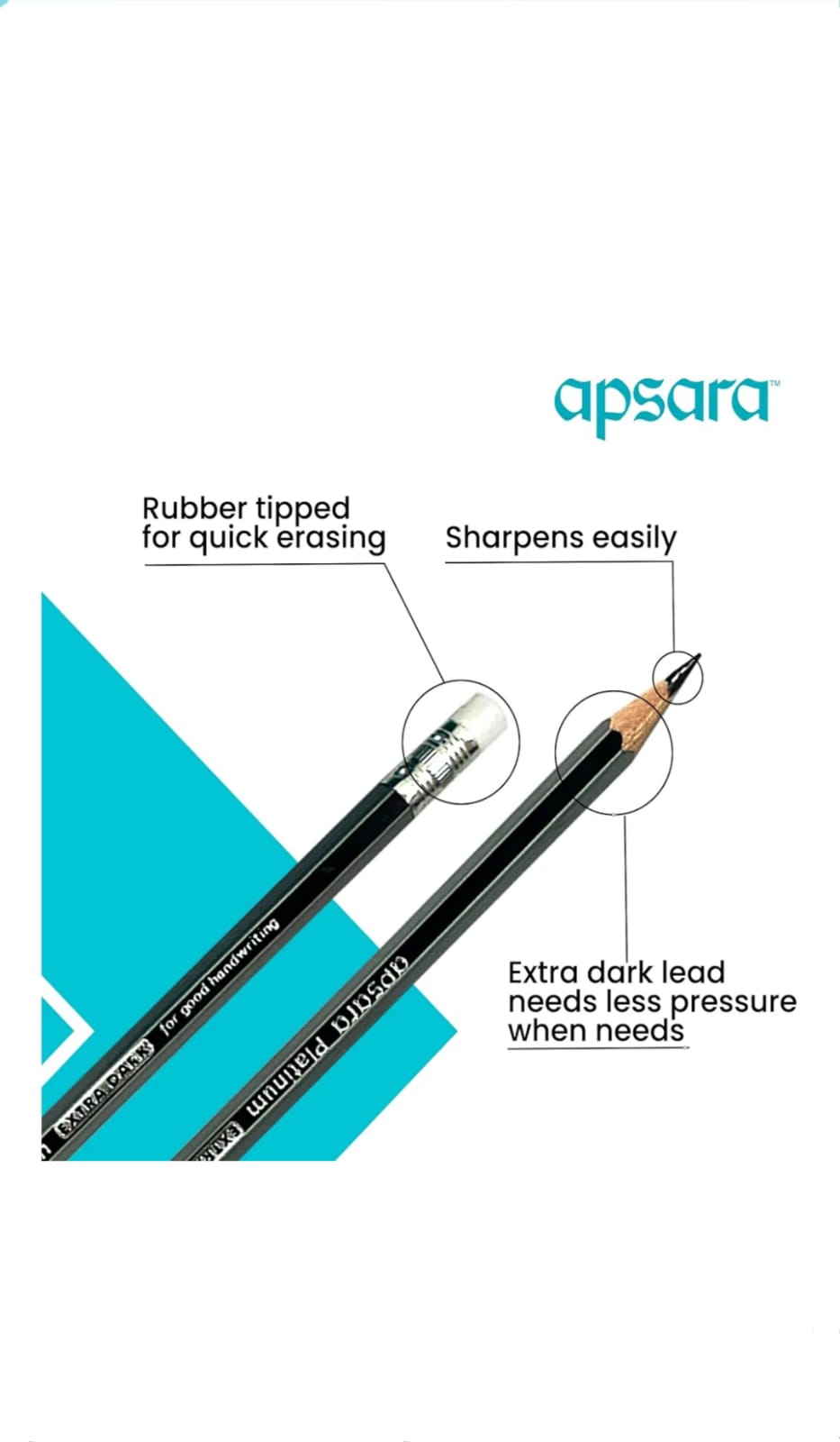 Apsara Platinum Pencil, Hexagonal Body for strong Grip, Extra Dark, Easy Sharpening, Free Sharpener & Eraser (Packet), Non-Toxic, Use for School, College Students & Office person, Pack of 10 pencil
