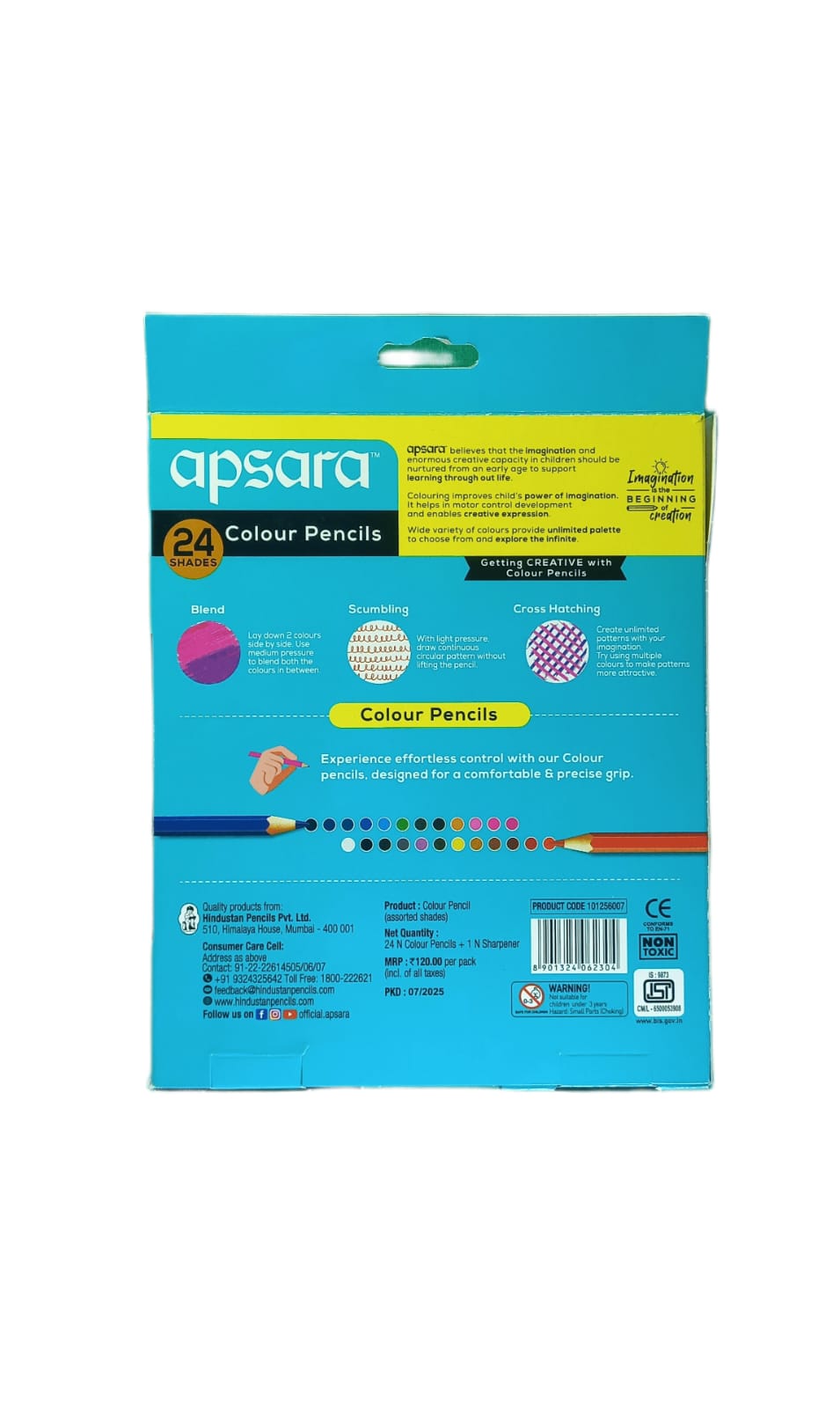 Pencil - 24 Shades Bright Multi Colours 172mm With Free Sharpener