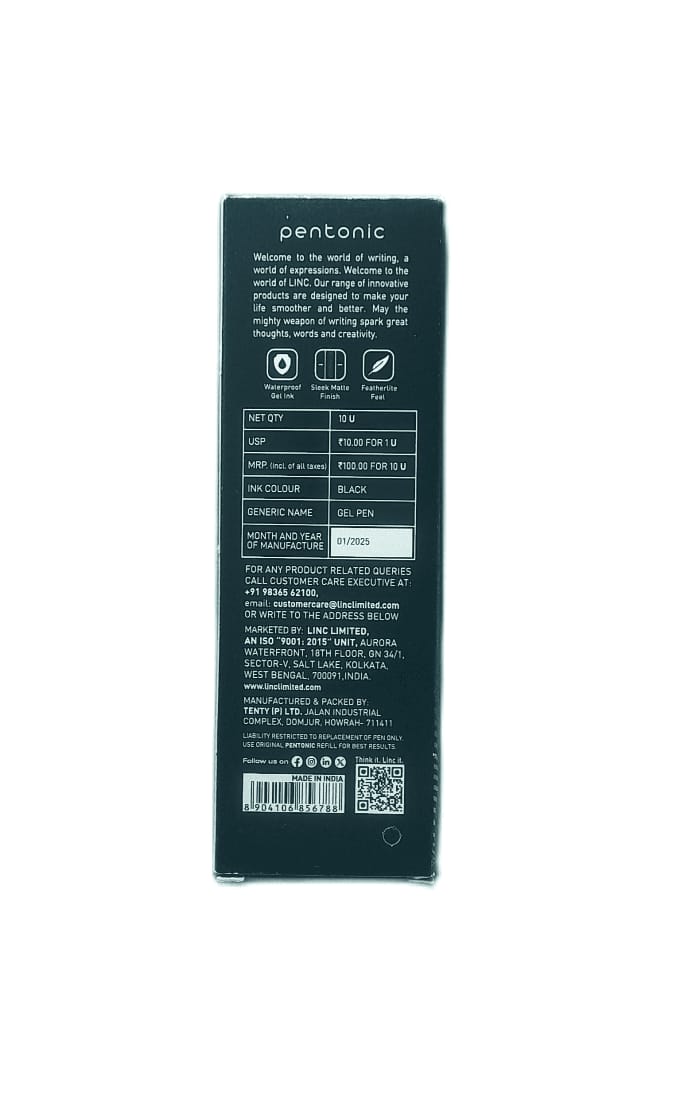 Pentonic 0.6mm Black Gel Pen - Pack Of 10, Pack Of 10, Smooth Writing