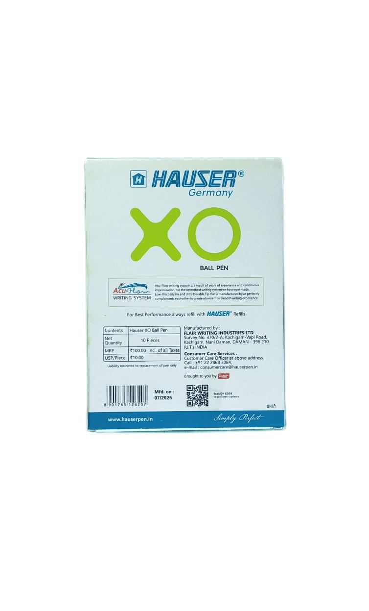 Hauser XO Black Ball Pen - Pack Of 10, Matt Finish, Solid Body Type, Smooth Writing.