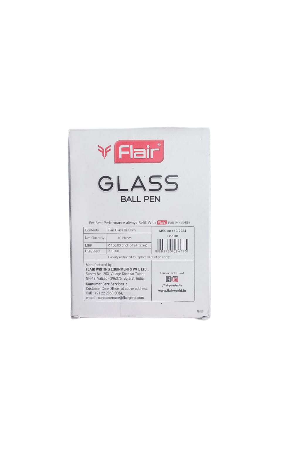 Flair Glass Gel Pen Blue, Best for writting, Pack of 10