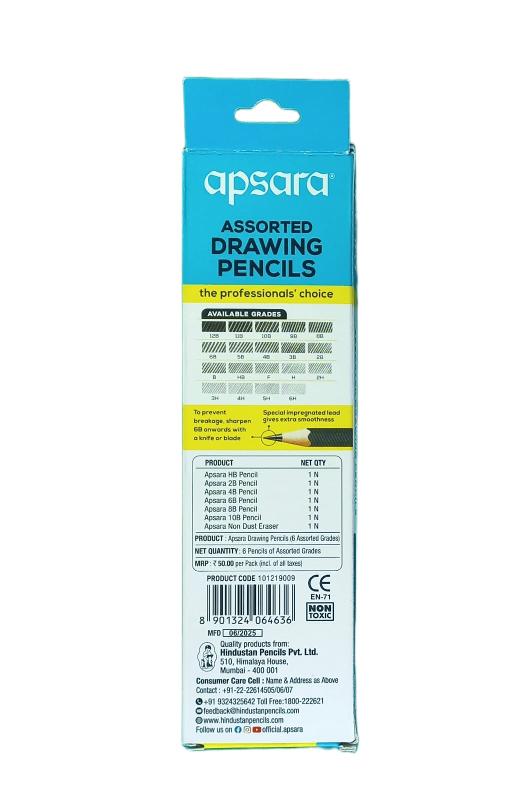 Drawing Pencil 6 Shade With HB, 2B, 4B, 6B, 8B, 10B Grades