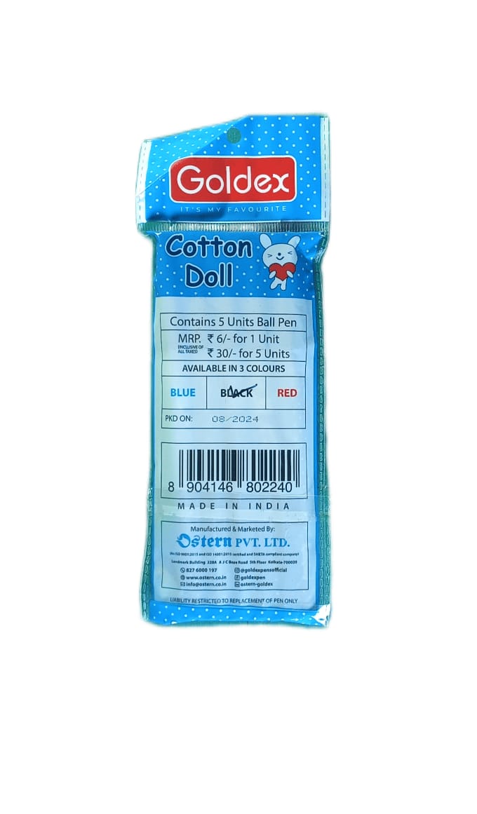 Goldex Cotton Doll Black Ball Pen - Pack Of 5, Smooth Writing