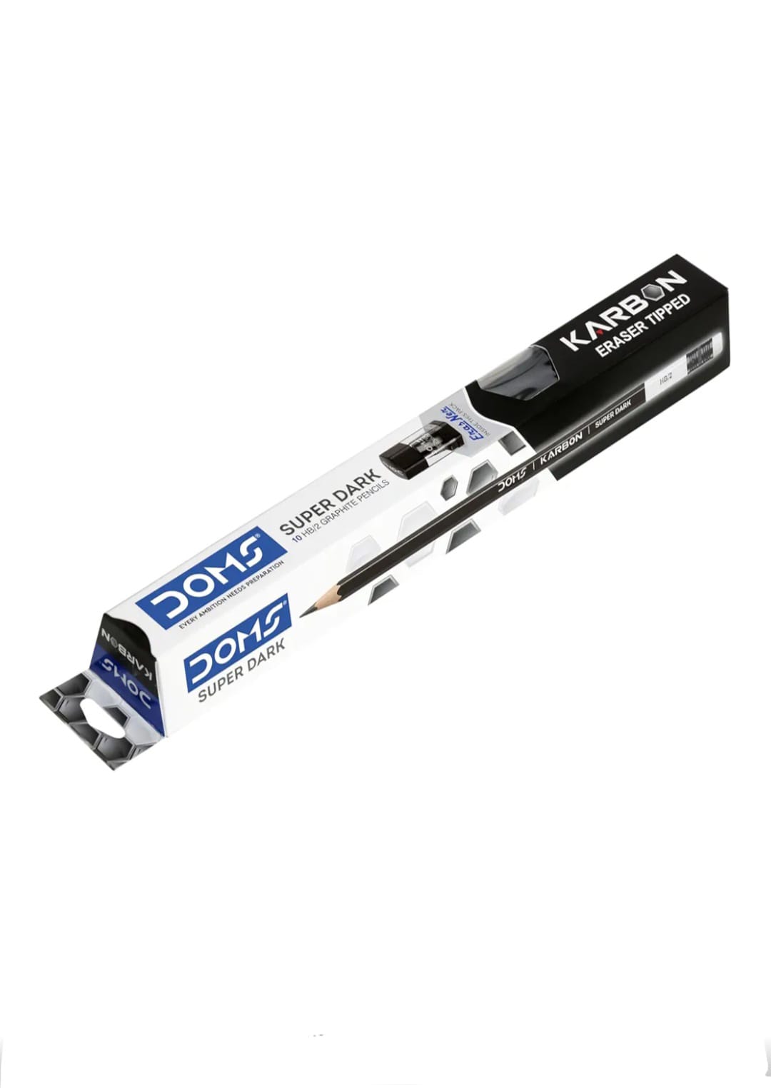 Doms KARBON Pencil, Strong Grip, Extra Dark, Easy Sharpening, Free Sharpener (Packet), Non-Toxic, Use for School, College Students & Office person, Pack of 10 pencil