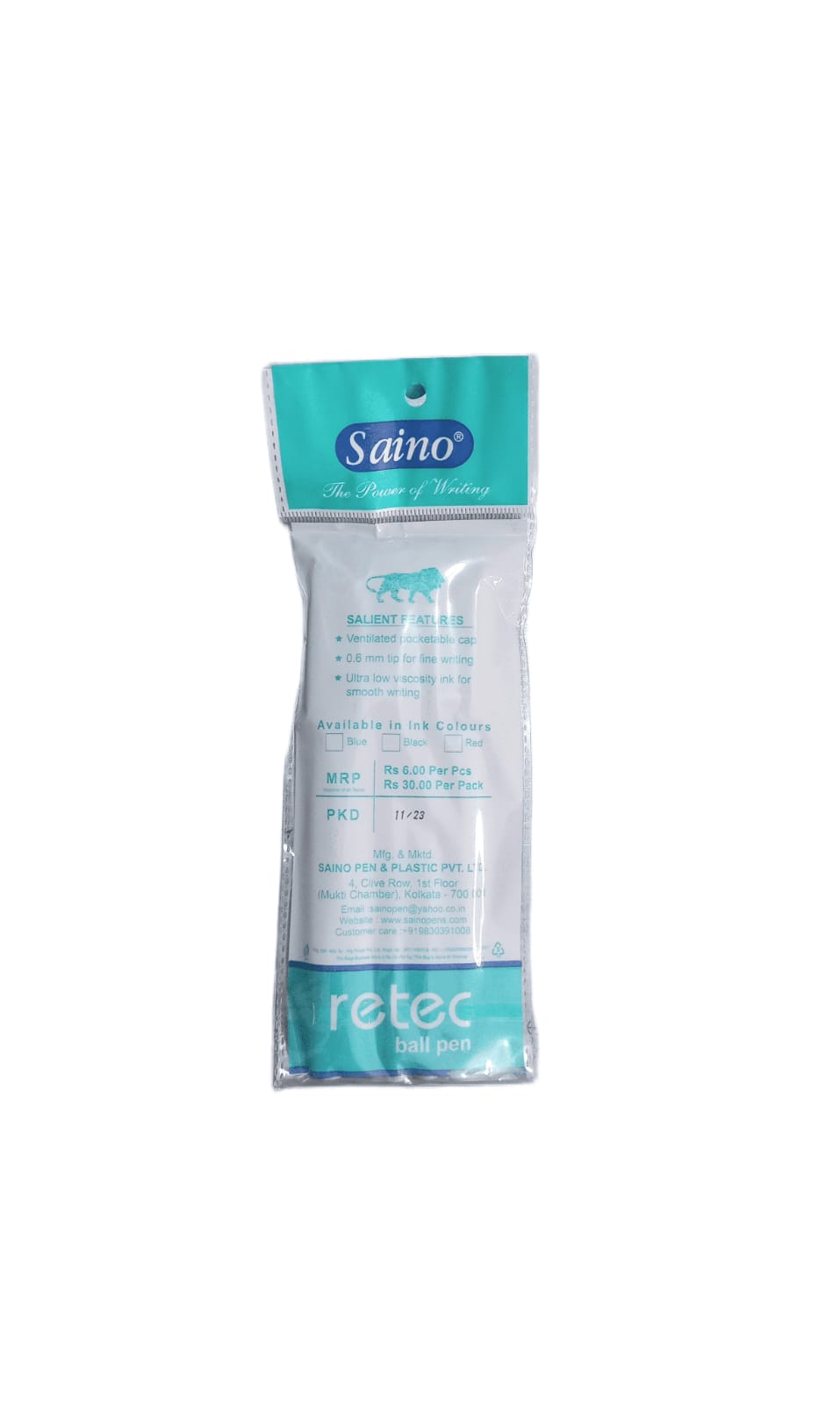 Saino Retec Black Ball Pen - Pack Of 5, Smooth Writting