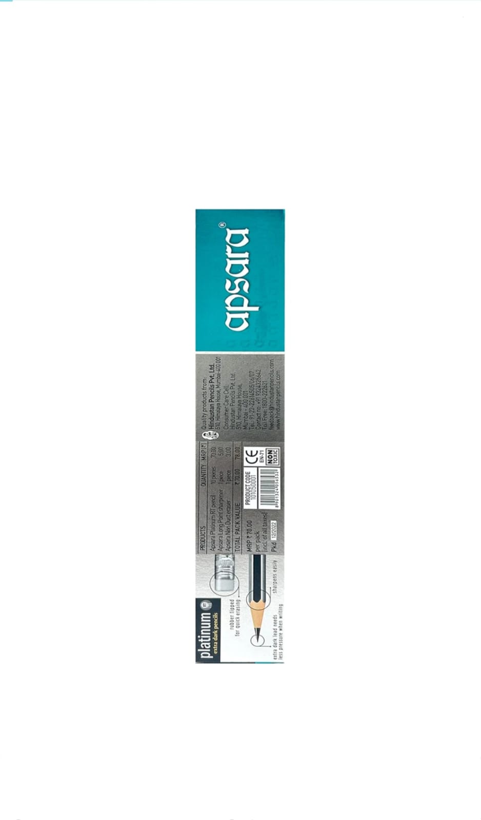 Apsara Platinum Pencil, Hexagonal Body for strong Grip, Extra Dark, Easy Sharpening, Free Sharpener & Eraser (Packet), Non-Toxic, Use for School, College Students & Office person, Pack of 10 pencil