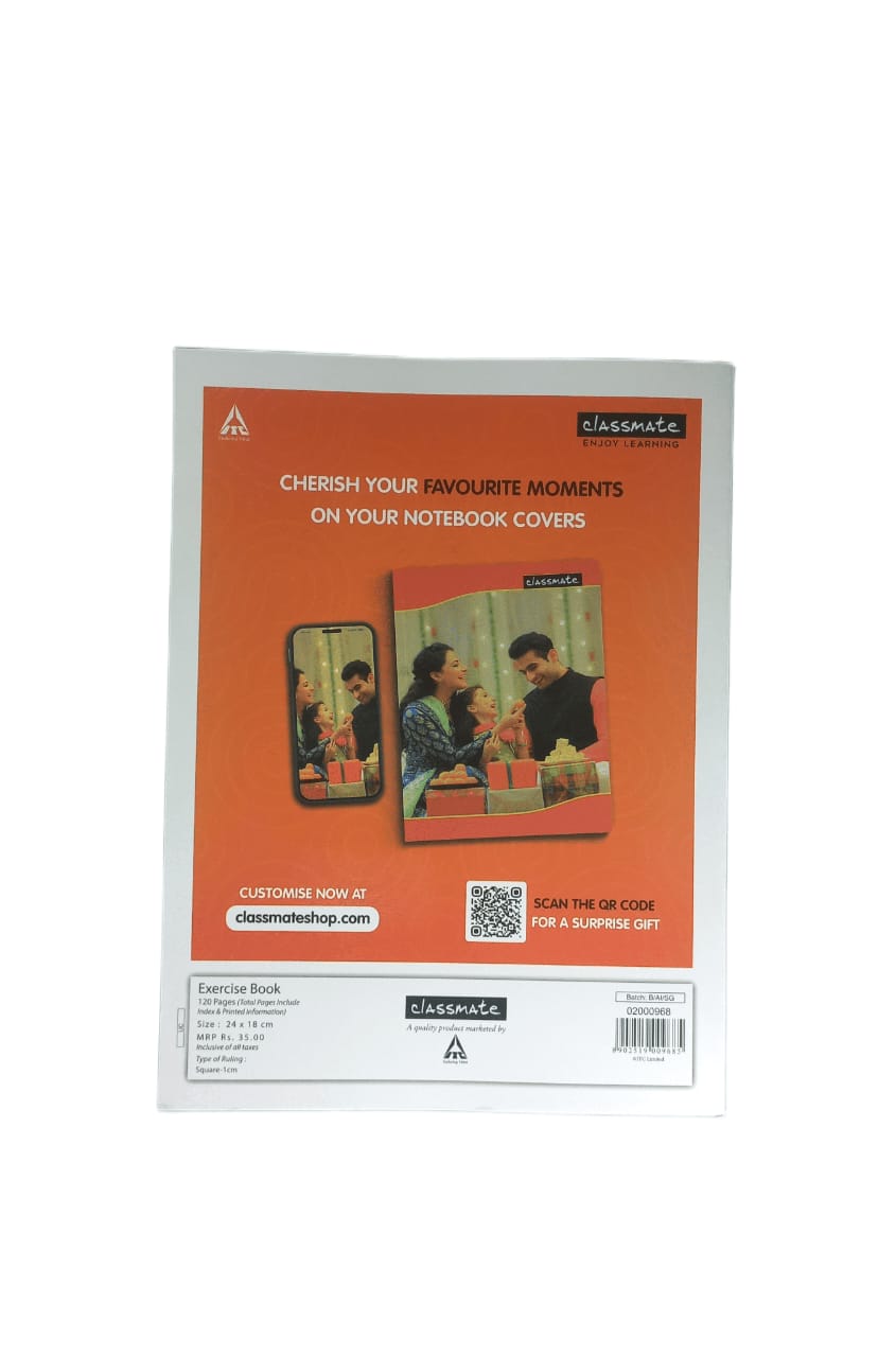 Square Line 1cm 120 Pages, 24X18cm Classmate Notebook Single Piece Available (Cover Page Design Might Vary)