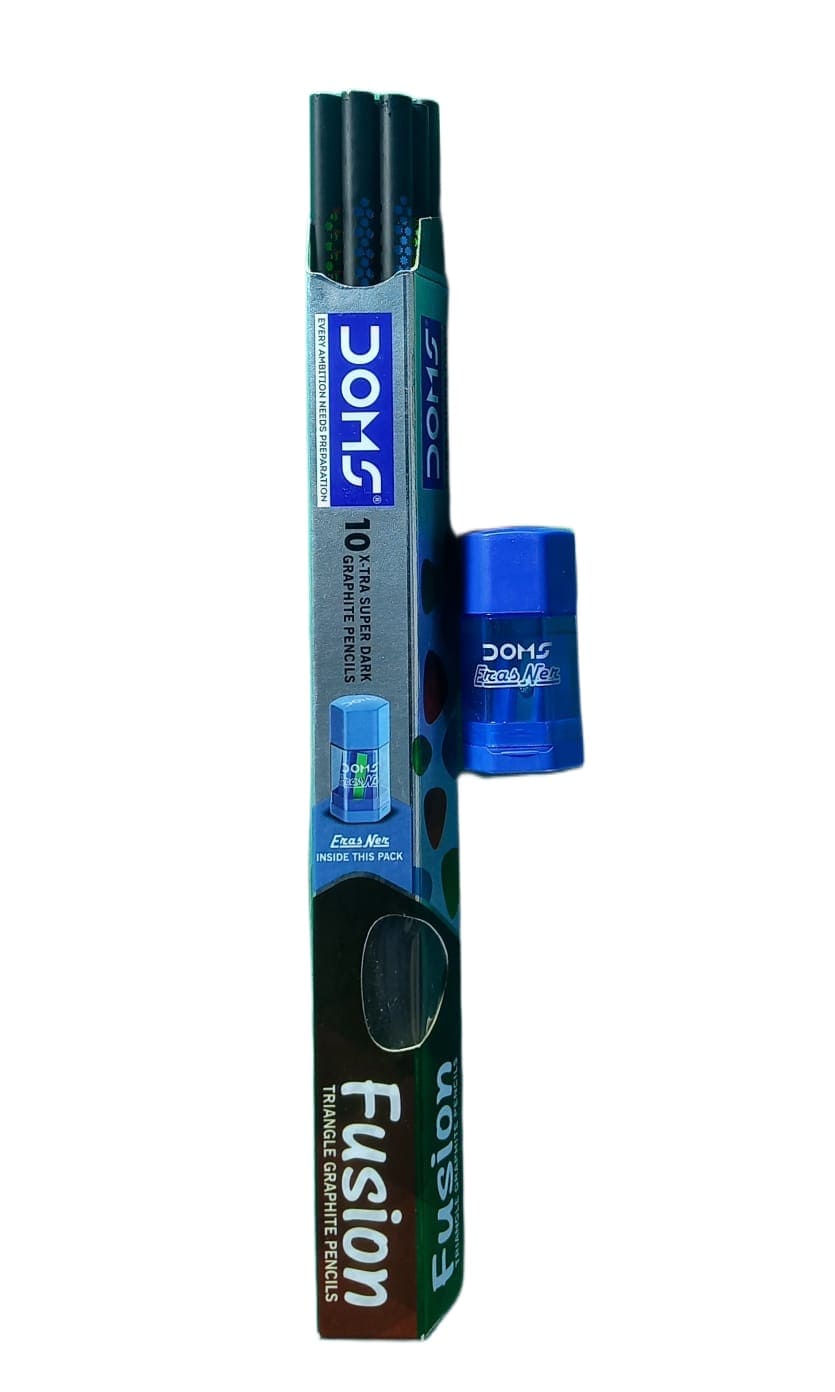 Doms Fusion Pencil With Free Sharpener, Strong Grip, Extra Dark, Easy Sharpening, Non-Toxic, Use for School, College Students & Office person, Pack of 10 pencil